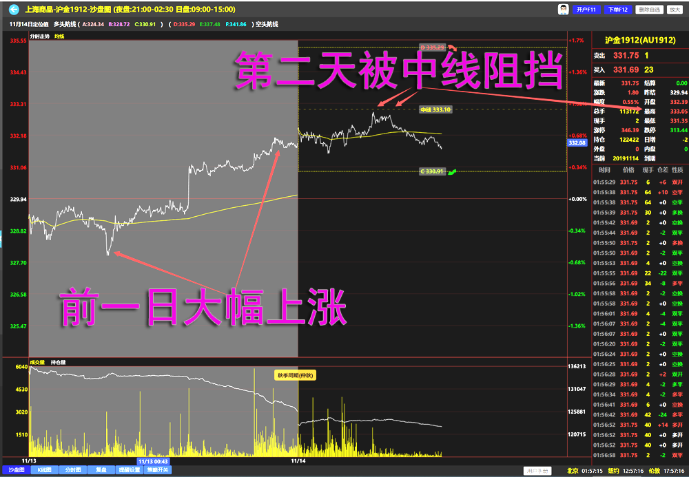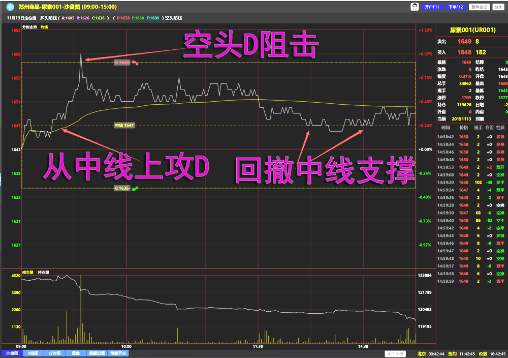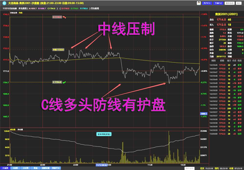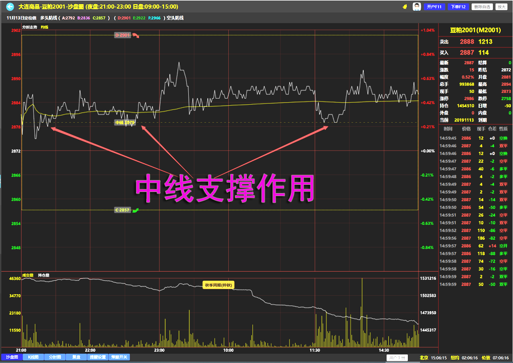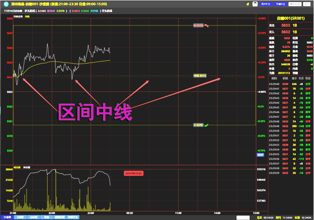 在一些多空防线跨度比较大的区间,一般是区间幅度超过1%,会增加一条区间中线,可以让用户一下看清楚多空交锋的中间位置在那里,方便做短线交易,提高盈利的确定性。