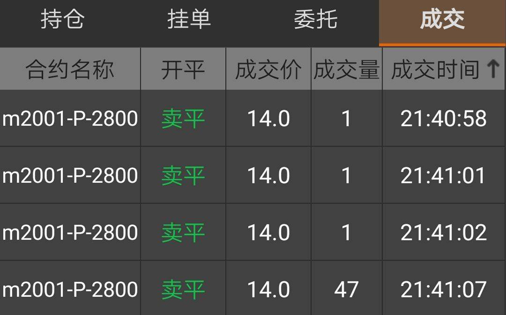 可以看到截图上,买入了50手看跌期权M2001-P-2800,买入均价9.1元。