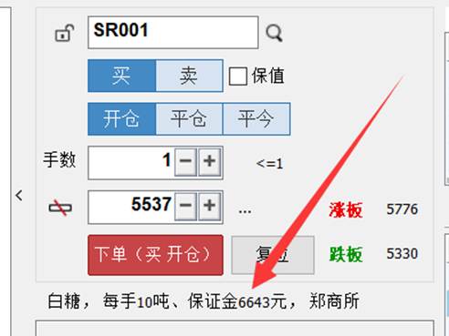 看下图,如果换到1手白糖期货持仓,保证金要6634元,就是说,行权,你要准备更多的钱了。
